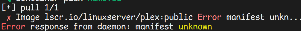 ✘ Image lscr.io/linuxserver/plex:public Error manifest unkn... 1.4s